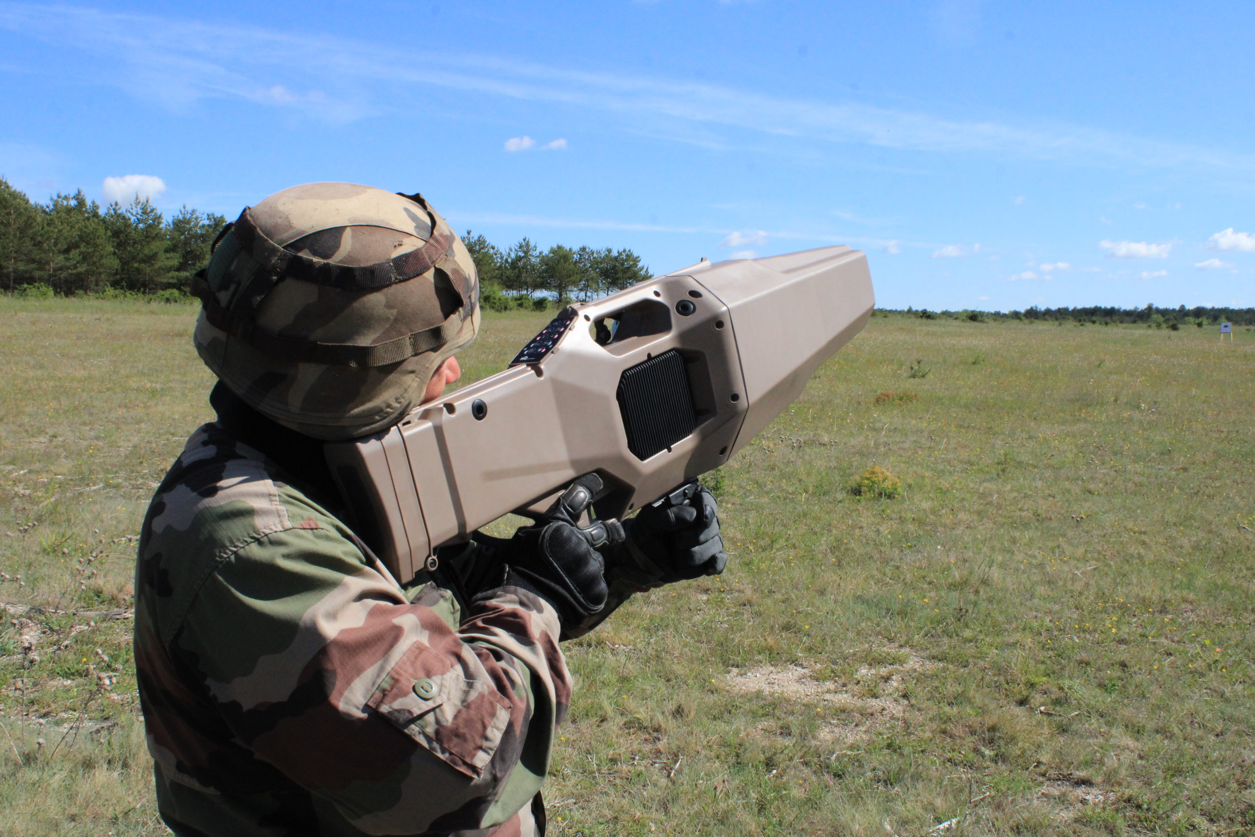 The French Navy uses an MC2 jammer to neutralize a drone in operation