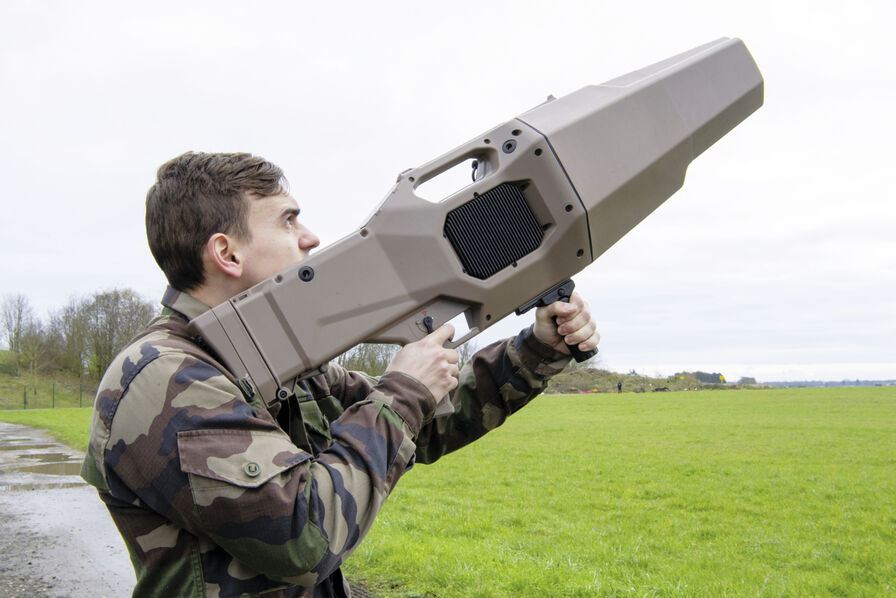 What looks like a ray gun from Star Wars is a weapon for defending against drones - without any ammunition. The French manufacturer MC2 Technologies writes: “To ward off drones, the Nerod RF generates sound signals. These signals are received by the drone and immediately disrupt its function by interrupting the connection to the control unit.” In this way, the drone can be forced to land. The weapon can jam seven frequency ranges simultaneously. Drones that are controlled in autopilot mode via satellite are also to be intercepted.
